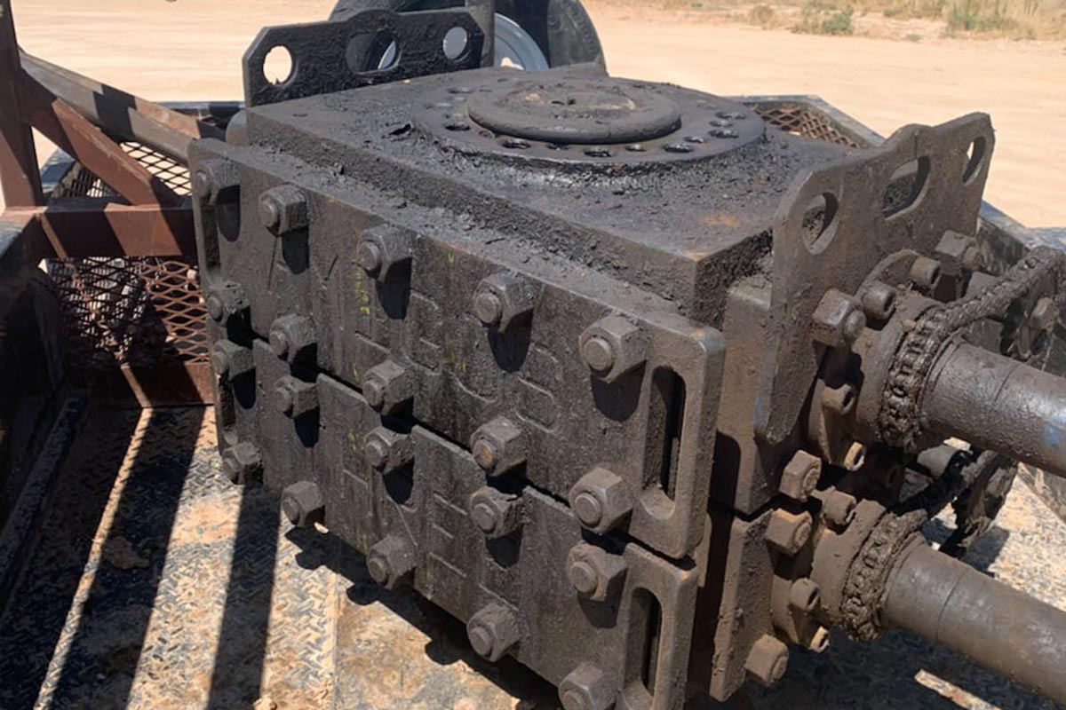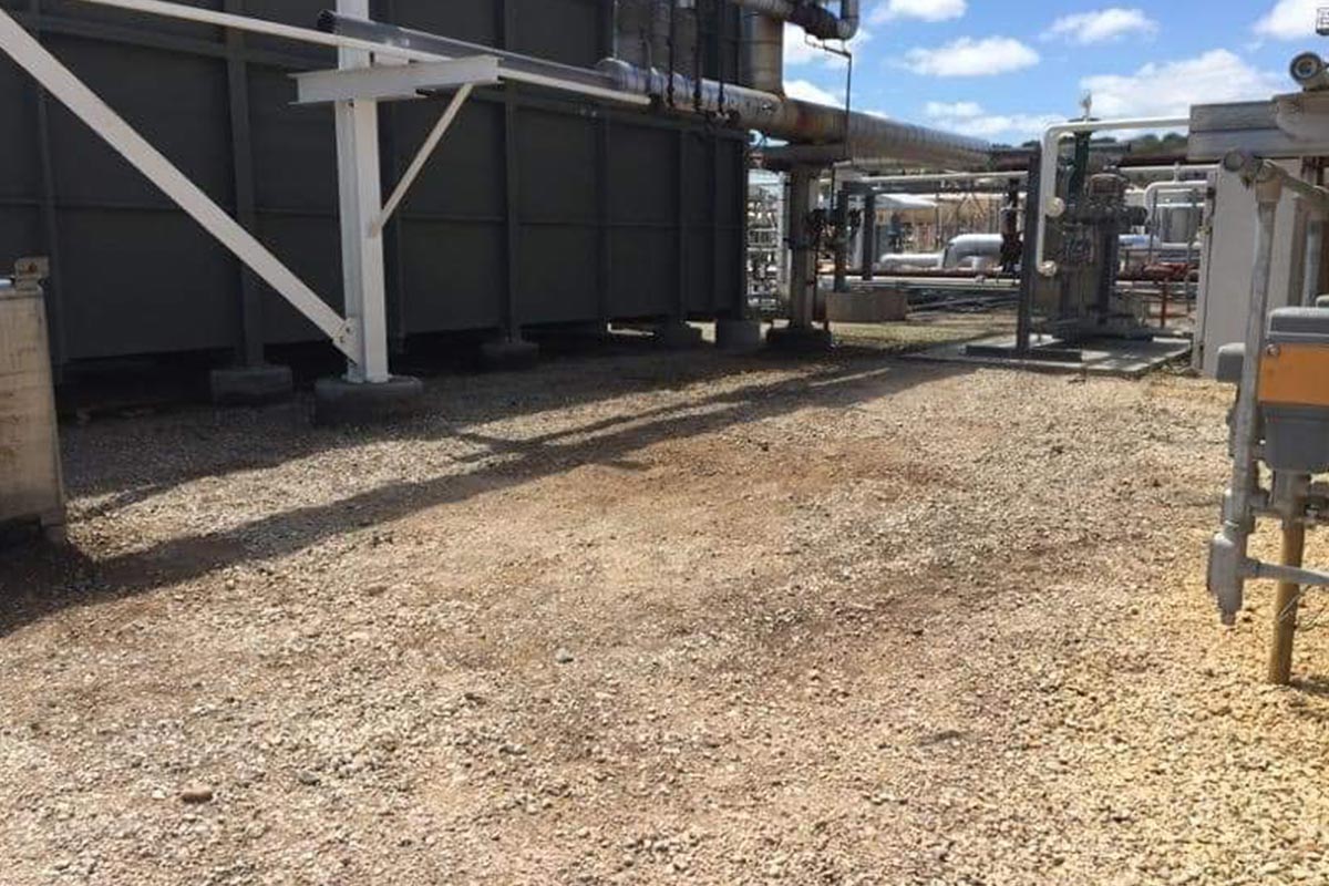 The photograph below shows a typical oil spill on the soil at a wellhead. The area is approximately 30 ft x 80 ft. R3OG for Soil is mixed at a ratio of 2 parts water to 1-part R3OG. A typical trash pump is connected to the R3OG container, and the product is sprayed liberally on the oil-covered soil.
